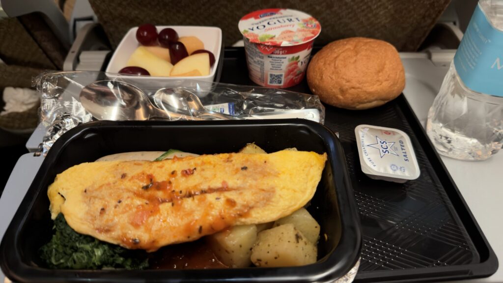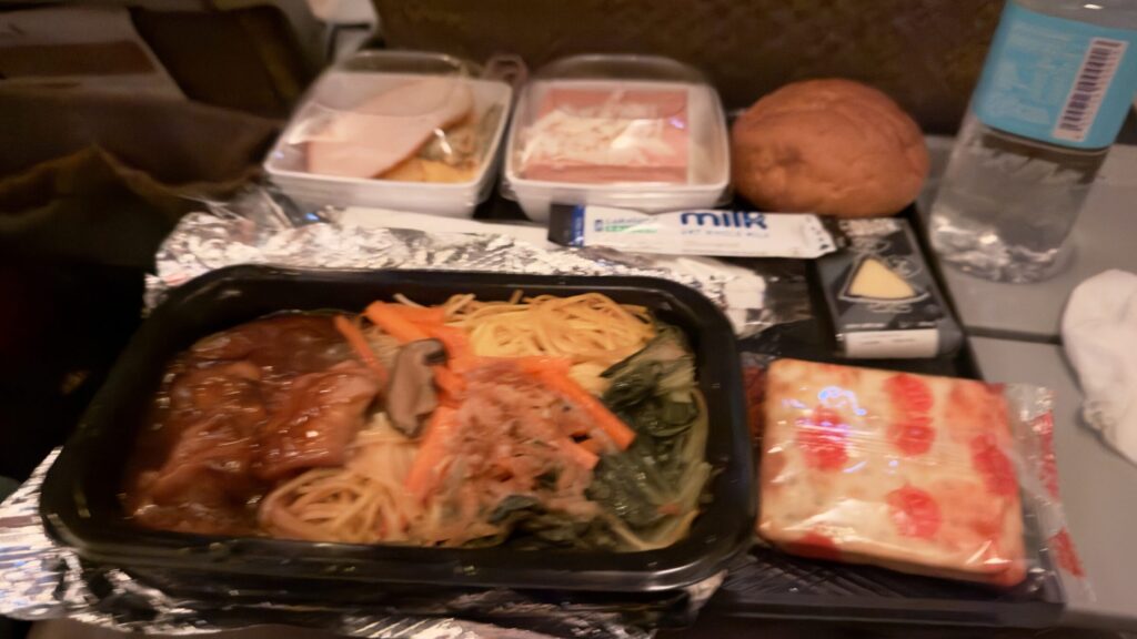 長旅なので機内食が3回も出てきますが、座って寝てるだけなので食べすぎないよう控えめにしておきました。